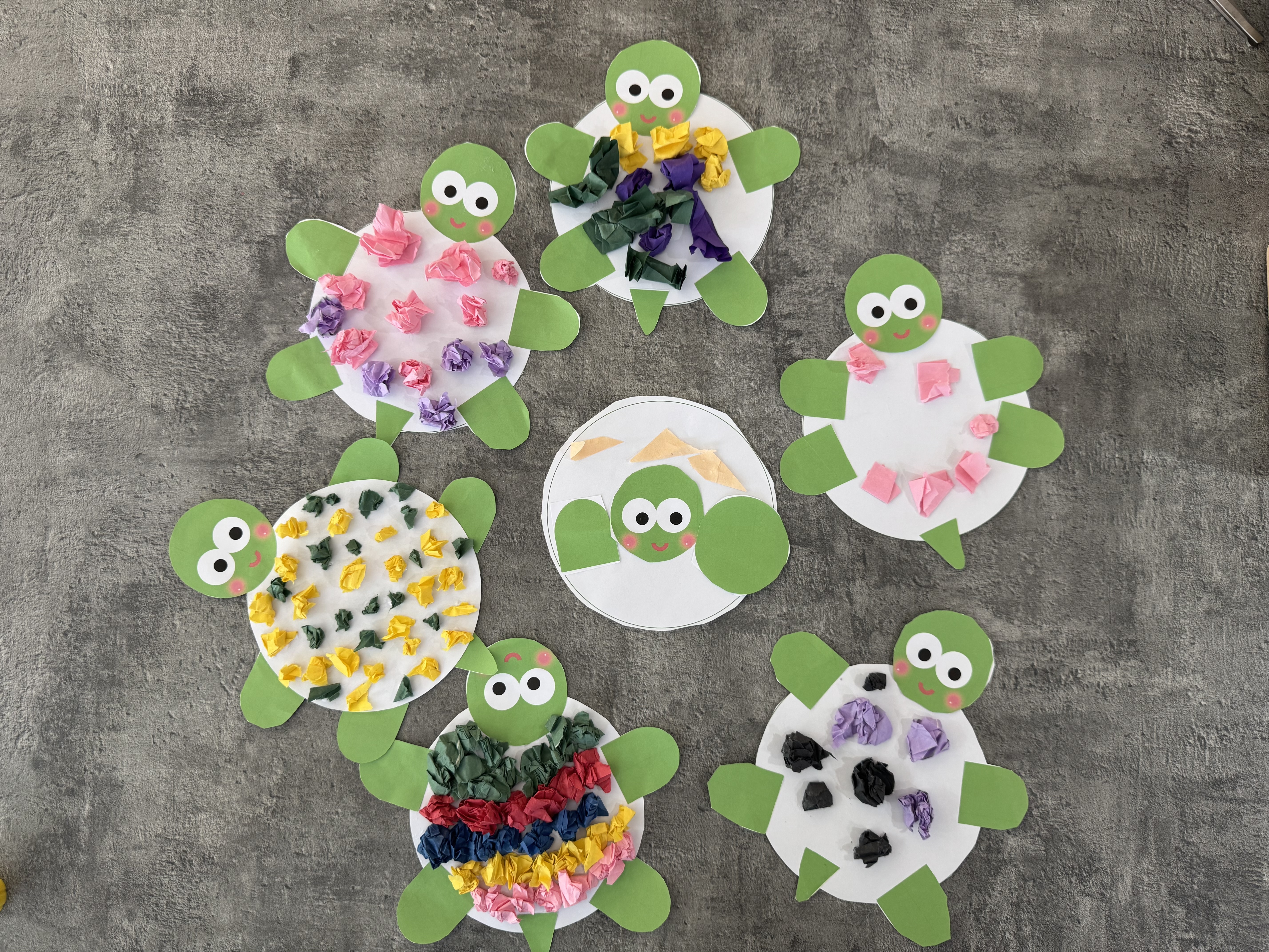 완성된 거북이들을 모아놓고 보니 귀엽기도 하고 누가 더 이쁘게 만들었는지 이야기를 나누며 프로그램 마무리 했습니다!